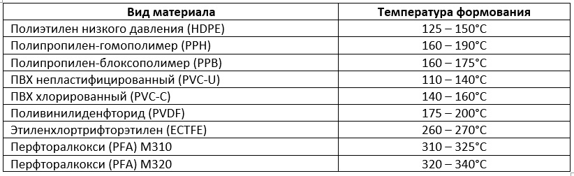 Чаще всего для формования используются следующие виды термопластов: